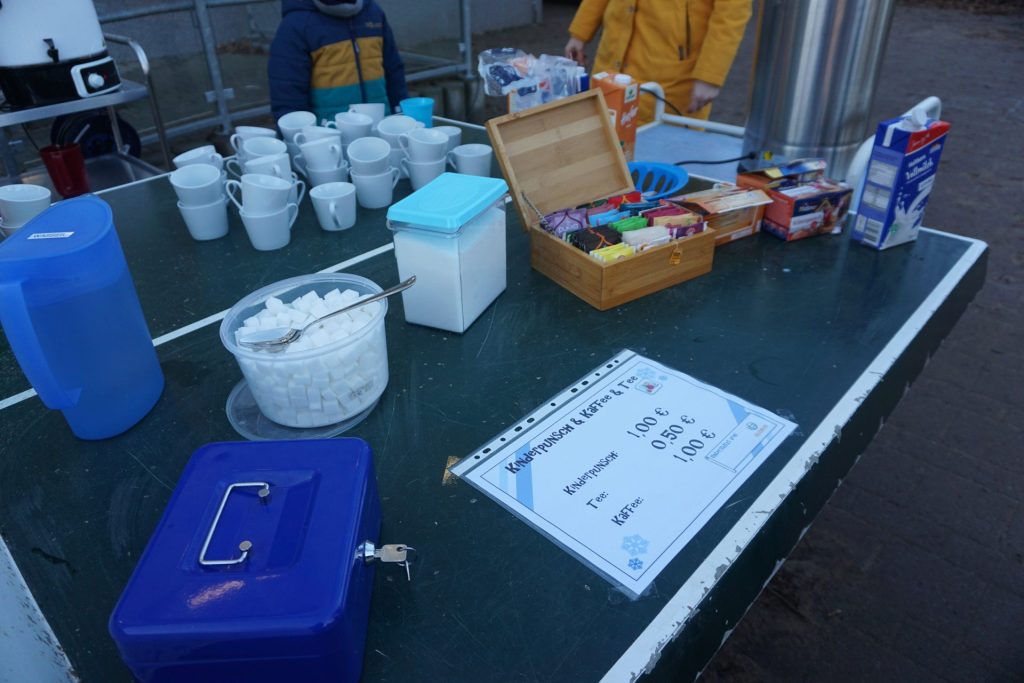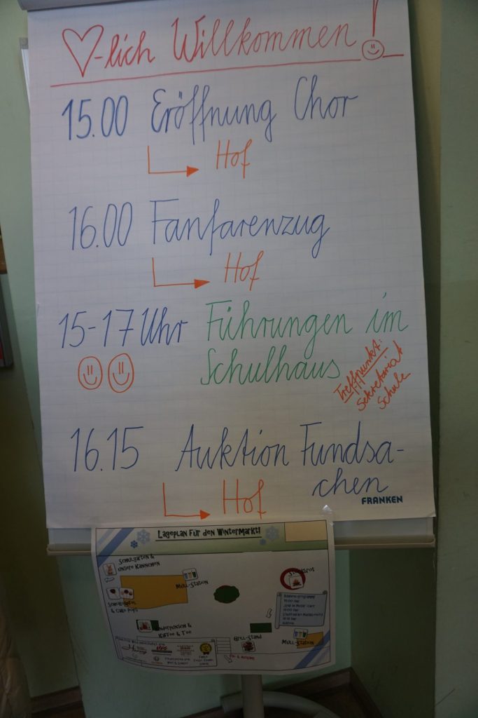 Auf dem Schulhof sorgte ein gemütliches Lagerfeuer mit Stockbrot für eine besonders warme und einladende Atmosphäre. Große und kleine Besucher freuten sich außerdem über Schokoäpfel und Cake Pops, die reißenden Absatz fanden. Für das leibliche Wohl war bestens gesorgt: Bratwurst und heiße Getränke ließen niemanden frieren.